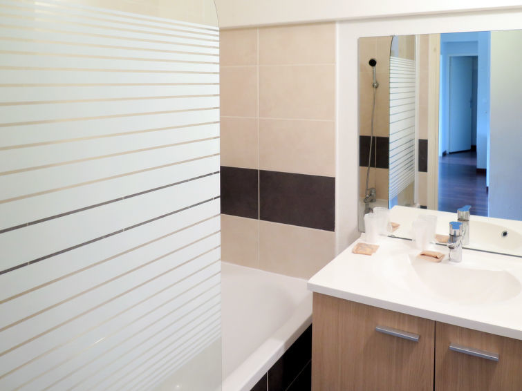 "Les Rives du Lac (LCA225)", appartement 4-kamers 49 m2, op de bovenverdieping. Doelmatig en modern ingericht: woon-/slaapkamer met 1 2-pers divanbed (135 cm), eettafel en Sat-TV. 1 kamer met 1 2-pers bed. 1 kamer met 2 bedden. 1 kamer met 1 2-pers bed en douche. Open keuken (afwasmachine, 4 keramische glas kookplaten, broodrooster, waterkoker, magnetron, diepvriezer, elektrische koffiemachine). Aparte WC, bad of douche. Elektrische verwarming. Balkon. Balkonmeubilair. Ter beschikking: Internet (Internet (WiFi), extra). Let op: niet rokers woning. Maximaal 1 huisdier/hond toegestaan. Rookmelders, geen lift.