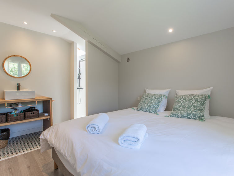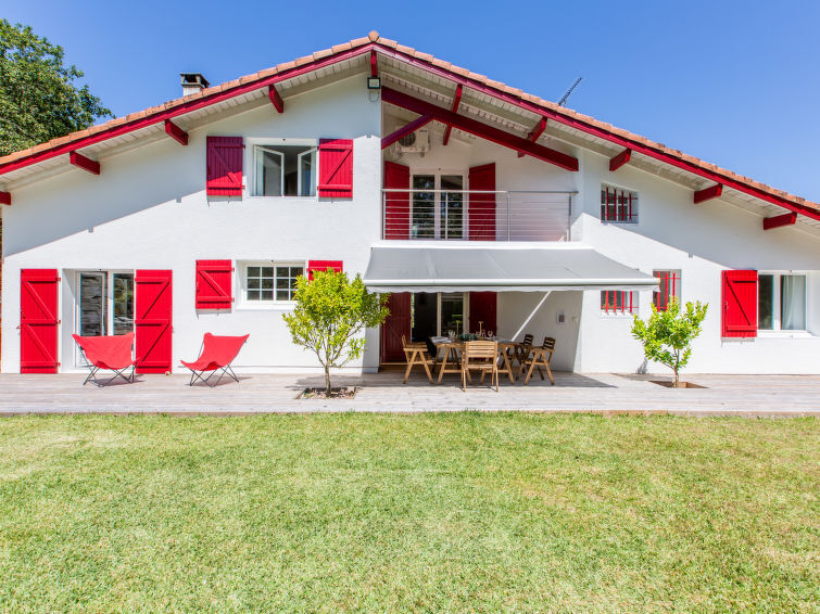 Villa 5-kamers 200 m2 op 2 verdiepingen. Ruim en licht, comfortabel en mooi ingericht: groot woon-/eetkamer 70 m2 met open haard en eettafel. Uitgang naar de tuin, naar het terras. Kleine bureau met TV (Flatscreen TV). 2 kamers, elke kamer heeft 1 2-pers bed (180 cm, lengte 200 cm). Open keuken (oven, afwasmachine, 3 inductiekookplaten, broodrooster, waterkoker, magnetron, diepvriezer, elektrische koffiemachine, pads voor de koffiemachine (Nespresso) extra) met eettafel. Bad/douche, aparte WC, dubbele wastafels. Bovenverdieping: 2 kamers, elke kamer heeft 2 bedden (90 cm, lengte 200 cm), wastafel en douche. Groot galerij. Uitgang naar het balkon. Aparte WC. Verwarming, air-conditioning. 2 balkons, op het zuidwesten gelegen en op het noordoosten gelegen, 2 terrassen gedeeltelijk overdekt, op het zuidwesten gelegen en op het noordoosten gelegen. Terrasmeubelen, barbecue (verrijdbaar), ligstoelen (8). Mooi uitzicht op het meer, het zwembad en het bos. Ter beschikking: wasmachine, droger, strijkijzer, kinderstoel, kinderbed, haardroger. Internet (Internet (WiFi), gratis). Rookvrij huis. Rookmelders. In plaats van een afgesloten slaapkamer bevinden sommige slaapgedeeltes zich in een open ruimte (galerij, nis, etc.). Aanbod door een particulier volgens art. 155, IV van CGI.