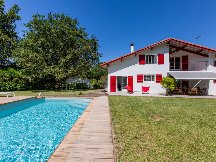 Groot, mooi, comfortabele villa "Caloye", gerenoveerd in 2022, omgeven door bomen. In het gehucht Caloye, 3 km van het centrum van Magescq, 8 km van het centrum van Soustons, 20 km van het centrum van Dax, 17 km van zee, 8 km van het meer, 17 km van het strand, te midden van groen. Voor alleengebruik: terrein 8.000 m2 met bomen, mooie tuin ter ontspanning, vijver, openluchtzwembad hoekig (10 x 5 m, 175 cm diepte, seizoensgebonden beschikbaarheid: 01.Mei. - 30.Okt.) met oprolbaar afdekscherm. Terras. Toegangsweg (100 m onverharde weg). Parkeerplaats (voor 3 auto's) bij het huis op het terrein. Winkel 3 km, supermarkt 8 km, restaurant 3 km, bushalte "St Geours de Marenne" 8 km, zandstrand "Vieux-Boucau/Soustons/Messanges" 17 km. Golfterrein (27 holes) 21 km. Attracties in de buurt: Seignosse 20 km, Hossegor 25 km, Bayonne 50 km, Biarritz 55 km, San Sebastian 100 km. Bekende meren kunnen gemakkelijk worden bereikt: Lac de Soustons 8 km, Lac d'Hossegor 25 km. De omgeving is gevoelig voor geluidsoverlast. Gelieve geen lawaai te maken en de rust te bewaren.