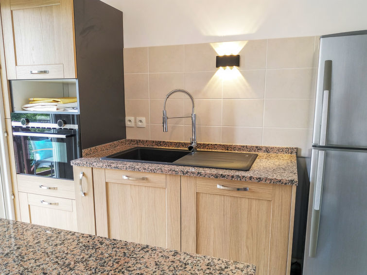 Appartement 2-kamers 45 m2 op de 1e verdieping. Comfortabel en mooi ingericht: woon-/eetkamer met 1 2-pers divanbed (1 x 140 cm, lengte 190 cm), TV (Flatscreen TV), radio en DVD. Uitgang naar het terras. 1 kamer met 1 2-pers bed (1 x 140 cm, lengte 190 cm). Keuken (4-pits kookplaat, oven, magnetron, diepvriezer, elektrische koffiemachine). Badkamer, aparte WC. Elektrische verwarming. Terras 16 m2, op het zuiden gelegen. Terrasmeubelen. Ter beschikking: wasmachine, strijkijzer, haardroger. Internet (Internet (WiFi), extra). Parkeerplaats nr. 19. Let op: rookmelders. 64125001005F3