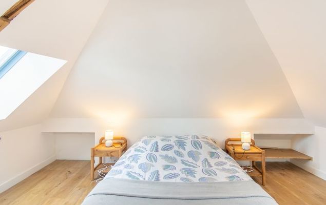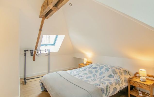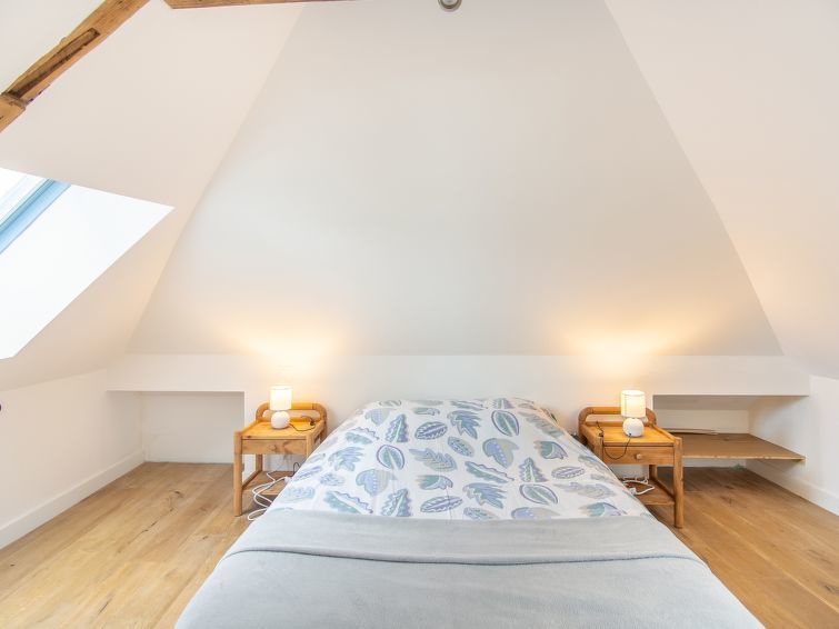 "Le point du jour 2", dakappartement 2-kamers 40 m2 op de 2e verdieping. Comfortabel en modern ingericht: groot woon-/eetkamer, hoogte van het plafond 160 - 175 cm met 1 divanbed (90 cm, lengte 190 cm), TV (Flatscreen TV). 1 groot kamer met 1 2-pers bed (1 x 140 cm, lengte 190 cm). Open keuken (afwasmachine, 3 inductiekookplaten, broodrooster, waterkoker, diepvriezer, elektrische koffiemachine, combimagnetron). Badkamer, aparte WC. Elektrische verwarming. Parketvloeren. Zeer mooi uitzicht op zee. Ter beschikking: haardroger. Internet (Internet (WiFi), gratis). Let op: rookvrij huis. Rookmelders.