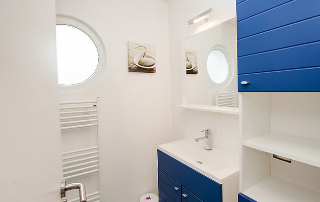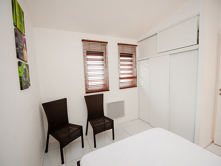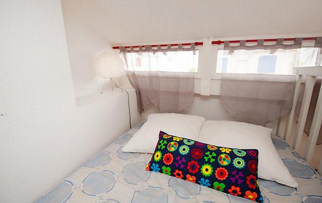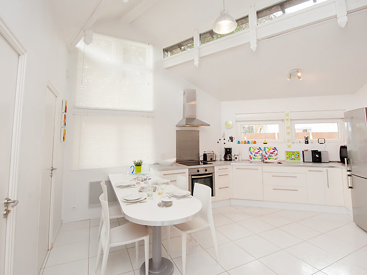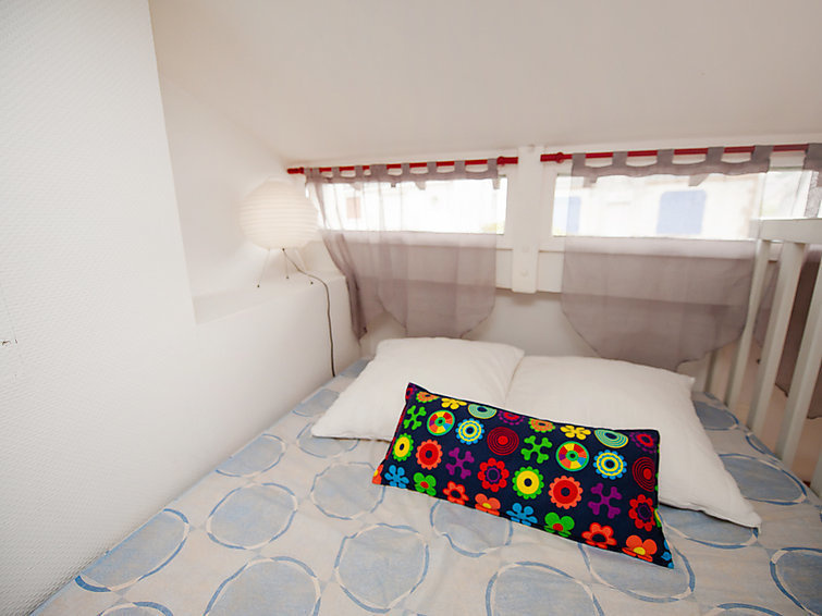 Huis 2-kamers 45 m2 op 2 verdiepingen. Mooi ingericht: woon-/eetkamer met TV en DVD. Uitgang naar het terras. 1 kamer met 1 2-pers bed (140 cm). Open keuken (4-pits kookplaat, oven, afwasmachine, magnetron) met radio. Douche, aparte WC. Bovenverdieping: (wenteltrap) galerij met 1 2-pers divanbed. Elektrische verwarming. Klein terras 5 m2, op het zuidoosten gelegen. Terrasmeubelen, barbecue. Ter beschikking: wasmachine, strijkijzer, kinderbed tot 2 jaar. Internet (Internet (WiFi), extra). Let op: maximaal 1 huisdier/hond toegestaan. Rookmelders.