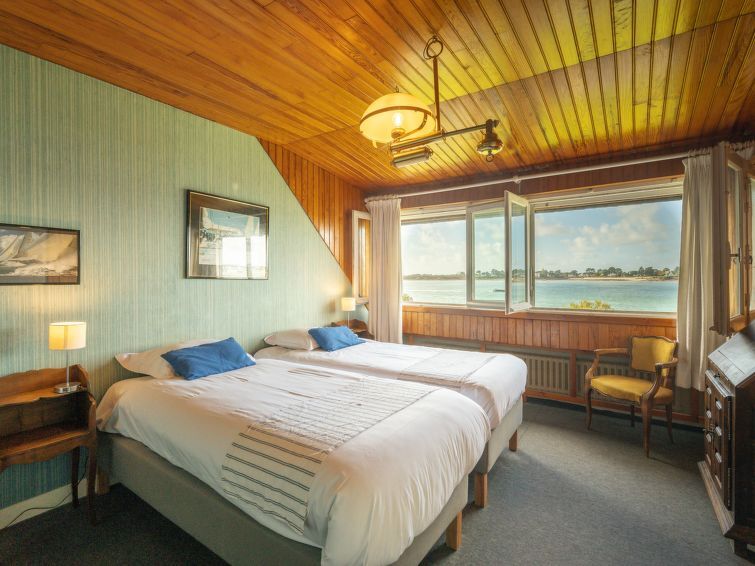 Villa "La Villa Tribale", van 2 verdiepingen. 10 m van zee, 150 m van het strand. Voor alleengebruik: park 2 ha (omheind). Tennisbaan (1 x hard court), parkeerplaats (voor 5 auto's). Supermarkt 3 km, restaurant 2 km, bar 2 km, bakkerij 2 km, café 2 km, zandstrand "Kernevest" 900 m. Jachthaven 1.5 km, golfterrein (18 holes) 12 km, zeilschool 900 m, wandelroutes 10 m vanaf het huis. Attracties in de buurt: La Trinité Sur Mer 2 km, Carnac et ses alignements 7 km, Presqu'île de Quiberon 15 km, Vannes 35 km, Belle ile en Mer, Houat, Hoedic. Wandelgebied Le Golfe du Morbihan 30 km.