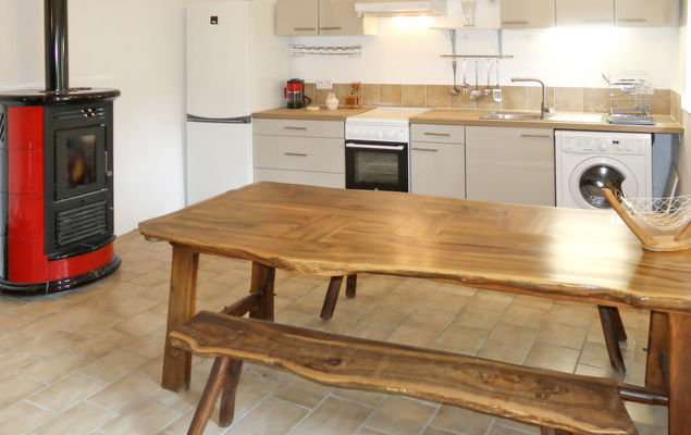 "La Volte", halfvrijstaand huis 4-kamers 80 m2. Doelmatig en mooi ingericht: woonkamer met zwedenkachel en TV. 1 kamer met 1 2-pers bed (140 cm). 1 kamer met afgeschuinde daken met 1 bed (80 cm), 1 2-pers bed (120 cm). 1 kamer met afgeschuinde daken met 1 2-pers bed (140 cm). Keuken (4-pits kookplaat, oven, afwasmachine, magnetron, diepvriezer, elektrische koffiemachine) met eettafel. Uitgang naar het terras. Douche/WC. Elektrische verwarming. Terras 25 m2. Terrasmeubelen, elektrische barbecue, ligstoelen (2). Mooi panoramazicht. Ter beschikking: wasmachine, strijkijzer, kinderbed tot 2 jaar, haardhout (extra). Let op: niet rokers woning.