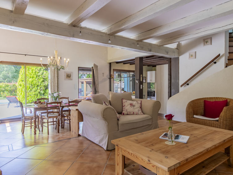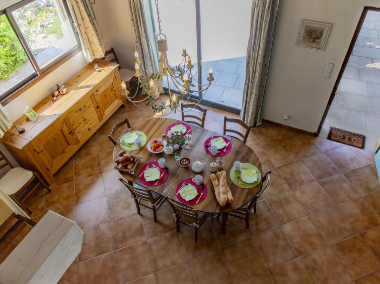 Villa 5-kamers 160 m2 op 2 verdiepingen. Comfortabel en mooi ingericht: woon-/eetkamer 35 m2 met panoramavenster met open haard en TV (Flatscreen TV). Uitgang naar het terras, naar het zwembad. 1 kamer met 1 x 2 stapelbedden (90 cm, lengte 190 cm). 1 kamer met 1 2-pers bed (160 cm, lengte 200 cm). Uitgang naar het terras. Groot keuken 15 m2 (oven, afwasmachine, 3 inductiekookplaten, broodrooster, waterkoker, magnetron, diepvriezer, elektrische koffiemachine, pads voor de koffiemachine (Tassimo) extra). Aparte WC, bad/douche/WC, dubbele wastafels. Elektrische verwarming, air-conditioning. Bovenverdieping: galerij. Uitgang naar het terras. 1 kamer met 1 2-pers bed (180 cm, lengte 200 cm). 1 kamer met 1 2-pers bed (140 cm, lengte 190 cm), elektrische rolluiken. Douche, aparte WC. Terras 50 m2, overdekt, op het westen gelegen. Terrasmeubelen, barbecue, ligstoelen (6). Ter beschikking: wasmachine, strijkijzer, kinderbed tot 2 jaar. Internet (Internet (WiFi), gratis). Geschikt voor families. Rookvrij huis. Rookmelders. Aanbod door een particulier volgens art. 155, IV van CGI.