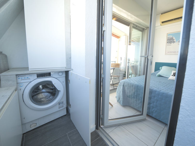 Appartement 2-kamers 44 m2 op de 8e verdieping, op het zuiden gelegen. Zeer comfortabel ingericht: woon-/eetkamer met 1 2-pers divanbed (160 cm, lengte 200 cm), TV (Flatscreen TV), elektrische verwarming en air-conditioning. 1 kamer met veranda met 1 2-pers bed (160 cm, lengte 190 cm), air-conditioning. Open keuken (oven, afwasmachine, 3 inductiekookplaten, broodrooster, waterkoker, magnetron, diepvriezer, elektrische koffiemachine). Douche, aparte WC. Elektrische verwarming. Klein terras 4 m2, op het zuiden gelegen. Terrasmeubelen. Zeer mooi uitzicht op zee en het landschap. Ter beschikking: wasmachine, strijkijzer, haardroger. Internet (Internet (WiFi), gratis). Parkeerplaats (1 Auto). Niet rokers woning. Rookmelders. Aanbod door een particulier volgens art. 155, IV van CGI. 30 04 503 039 356
