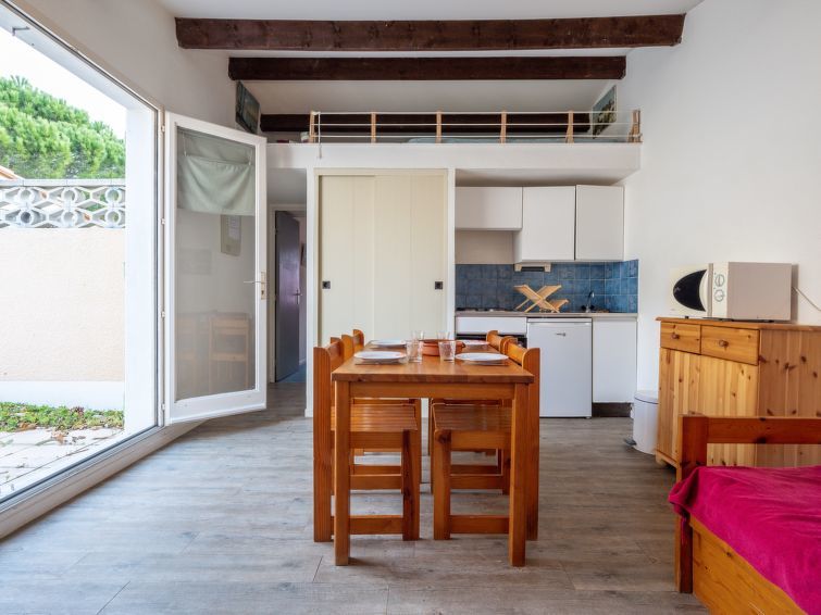 Residentie "l'Hacienda". 6 km van het centrum van Barcares, 2 km van zee, 50 m van het meer, 2 km van het strand. Voor medegebruik: openluchtzwembad (15 x 8 m, seizoensgebonden beschikbaarheid: 15.Jun.-15.Sep.). In het complex: winkel, restaurant, bakkerij 100 m, station "La Franqui" 20 km, zandstrand "La Grande Plage" 2 km. Zeilschool 200 m, tennis, tennishal, midgetgolf 50 m, manege 11 km. Attracties in de buurt: Aqualand Port leucate 7 km, Réserve Africaine de Sigean 41 km, Collioure 45 km, Le Castillet à Perpignan 28 km, Fort de Salses le Château 26 km, parcours aventure 7 km. Bekende meren kunnen gemakkelijk worden bereikt: Lac de villeneuve de la Raho 34 km, Lac de leucate ou de salses 11 km. Wandelgebied Sentier du guetteur 8 km, la forteresse de salses 15 km, Sentier du littoral Collioure 40 km.