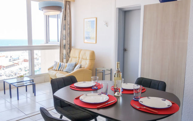 Appartement 2-kamers 40 m2 op de 6e verdieping. Comfortabel ingericht: woon-/eetkamer met TV (Flatscreen TV), air-conditioning. 1 kamer met 1 2-pers bed (140 cm, lengte 180 cm). Uitgang naar de loggia. Cabine met 1 x 2 stapelbedden (80 cm, lengte 180 cm). Kookhoek (4-pits kookplaat, oven, afwasmachine, magnetron, diepvriezer, elektrische koffiemachine). Douche/WC. Zeer mooi uitzicht op zee en de haven. Ter beschikking: wasmachine. Internet (Internet (WiFi), extra). Parkeerplaats (omheind). Let op: rookmelders.