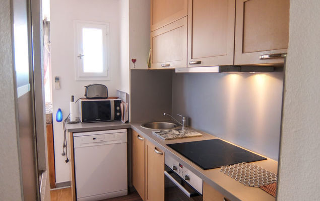 Appartement 3-kamers 50 m2 op de 3e verdieping. Comfortabel ingericht: woon-/eetkamer met TV, DVD en air-conditioning. Uitgang naar het terras. 1 kamer met 1 2-pers bed (140 cm, lengte 190 cm), air-conditioning. 1 kamer met 2 bedden (90 cm, lengte 190 cm). Open keuken (4-pits kookplaat, oven, afwasmachine, magnetron, diepvriezer, grill). Douche, aparte WC. Terras 12 m2, op het oosten gelegen terras 12 m2, op het zuiden gelegen. Terrasmeubelen. Ter beschikking: wasmachine. Internet (Internet (WiFi), gratis). Parkeerplaats nr. 25 extérieur. Let op: rookmelders, geen lift.