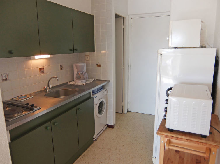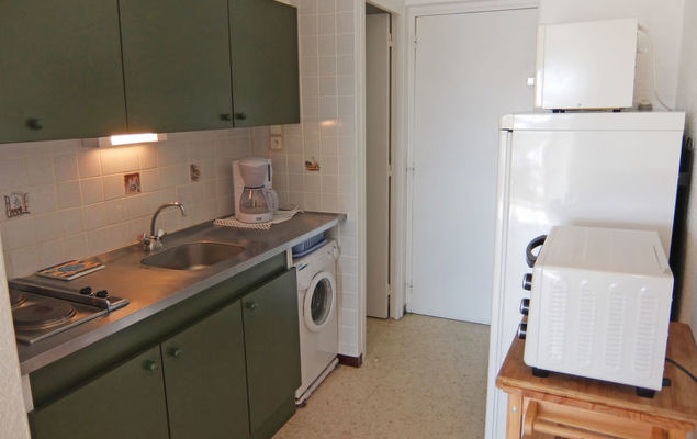 Appartement 1-kamer 27 m2 op de 3e verdieping, op het zuidoosten gelegen. Doelmatig ingericht: woon-/eetkamer met 1 divanbed en 1 2-pers divanbed (140 cm, lengte 190 cm), TV (Flatscreen TV). Uitgang naar het balkon. Kookhoek (2-pits kookplaat, mini-oven, magnetron, diepvriezer, elektrische koffiemachine). Douche/WC. Air-conditioning. Klein balkon. Balkonmeubilair. Uitzicht op zee en de haven. Ter beschikking: wasmachine. Internet (Internet (WiFi), extra). Parkeerplaats. Let op: maximaal 1 klein huisdier/hond toegestaan. Rookmelders.