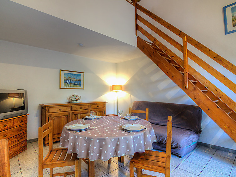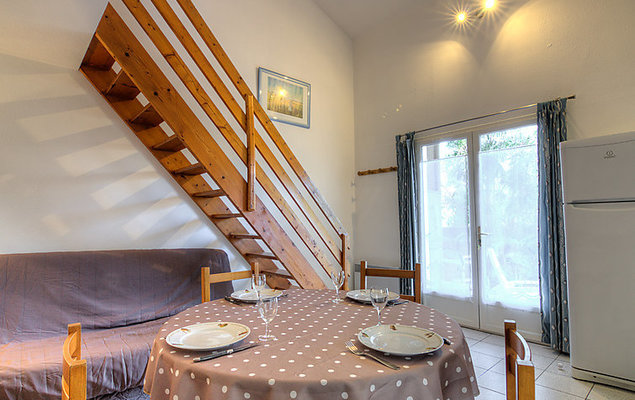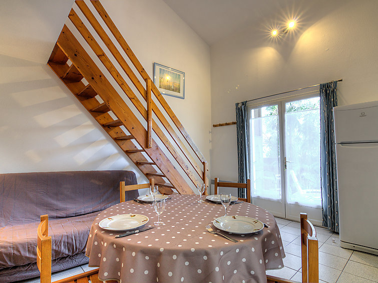 Huis in een rij 3-kamers 50 m2 op 2 verdiepingen. Woon-/eetkamer met 1 2-pers divanbed en TV. Uitgang naar de tuin, naar het terras. 1 kamer met 1 2-pers bed (140 cm, lengte 190 cm), ventilator. Kookhoek (3-pits kookplaat, oven, afwasmachine, magnetron, diepvriezer). Douche/WC. Air-conditioning. Bovenverdieping: 1 kamer met 1 2-pers bed (140 cm, lengte 190 cm), ventilator. Terras 12 m2, zithoek in de tuin 15 m2. Barbecue. Ter beschikking: wasmachine. Internet (Internet (WiFi), extra). Parkeerplaats nr. 83 extérieur. Let op: rookmelders.