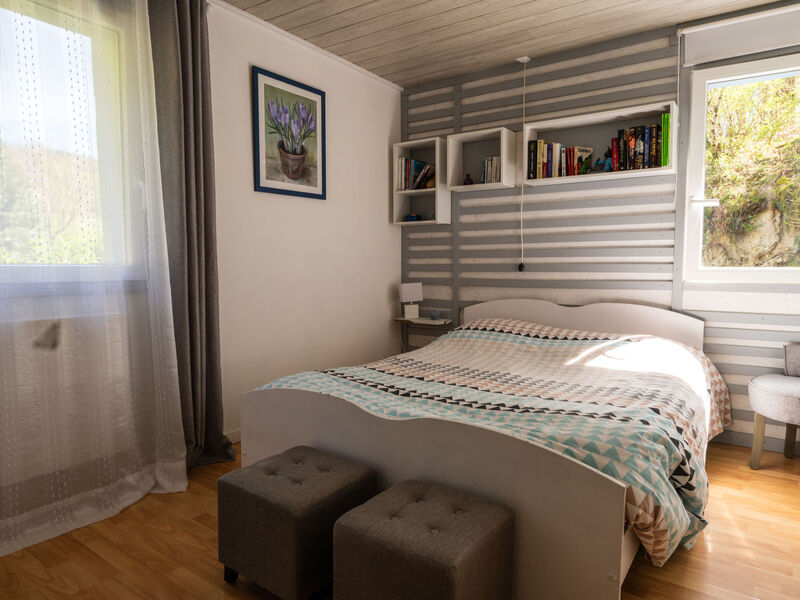 Huis 3-kamers 80 m2 op 2 verdiepingen. Mooi ingericht: woon-/eetkamer met zwedenkachel, eettafel en TV (Flatscreen TV). Uitgang naar de tuin, naar het balkon. 1 kamer met 1 2-pers bed (140 cm, lengte 190 cm). Open keuken (mini-oven, 4 kookpitten (vlammen), broodrooster, waterkoker, magnetron, diepvriezer, elektrische koffiemachine, pads voor de koffiemachine (Senseo) extra). Douche, aparte WC, dubbele wastafels. Bovenverdieping: (steile trap) salon met afgeschuinde daken. 1 kamer met afgeschuinde daken met 1 2-pers bed (140 cm, lengte 190 cm), douche/WC. Elektrische verwarming, houtverwarming. Klein balkon, 2 kleine terrassen. Terrasmeubelen, barbecue, ligstoelen (2). Mooi uitzicht op de rivier. Ter beschikking: wasmachine, strijkijzer, haardroger, haardhout (gratis). Niet geschikt voor kleine kinderen. Rookvrij huis. Maximaal 2 huisdieren/honden toegestaan. Rookmelders. Aanbod door een particulier volgens art. 155, IV van CGI.