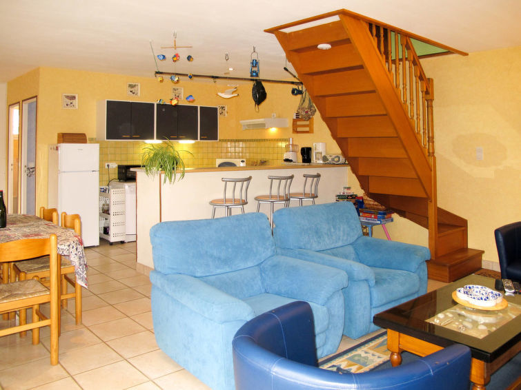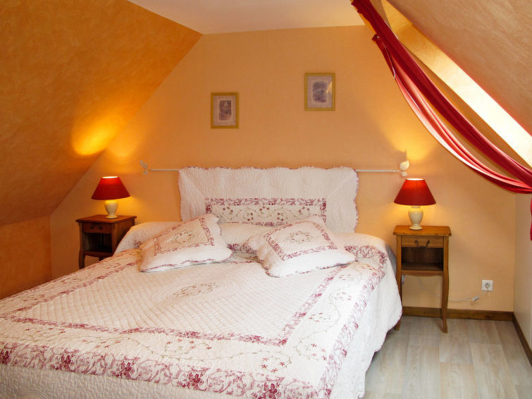 "Chez Laurette (SNT401)", huis 3-kamers 100 m2 op 2 verdiepingen. Doelmatig ingericht: woon-/eetkamer met eettafel en TV. Uitgang naar de tuin. Open keuken (mini-oven, oven, afwasmachine, 4 kookpitten (vlammen), broodrooster, waterkoker, magnetron, diepvriezer, elektrische koffiemachine). Douche, aparte WC. Bovenverdieping: open galerij met afgeschuinde daken met dakraam met 2 bedden. 1 kamer met afgeschuinde daken met dakraam met 1 2-pers bed. 1 kamer met afgeschuinde daken met dakraam met 1 2-pers bed. Elektrische verwarming. Terras. Terrasmeubelen, barbecue, ligstoelen (2), bergruimte. Ter beschikking: wasmachine, strijkijzer, kinderstoel, kinderbed. Maximaal 1 huisdier/hond toegestaan.