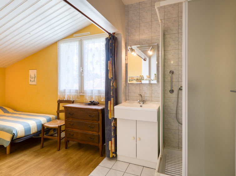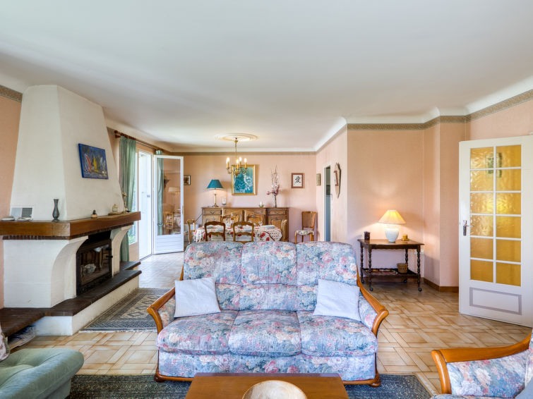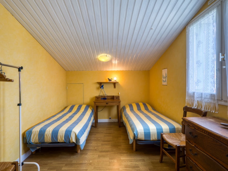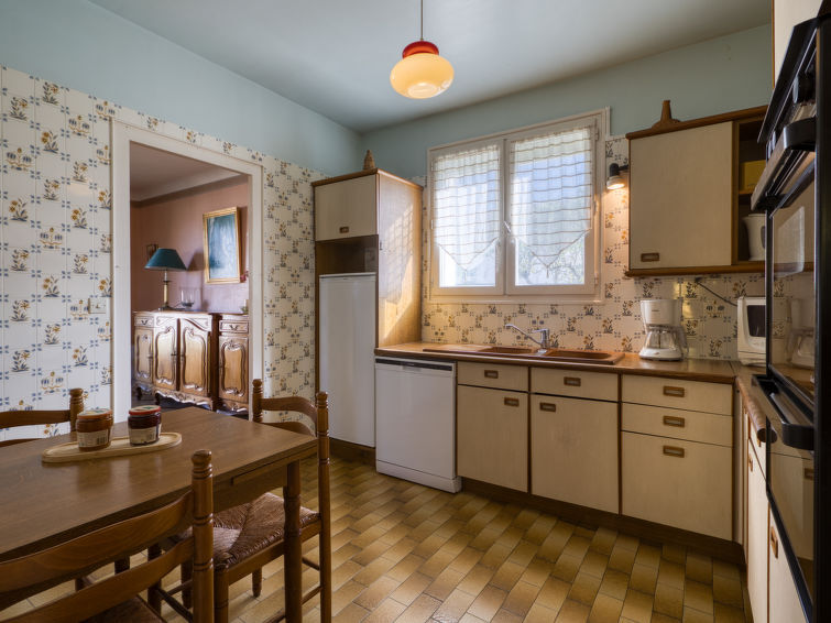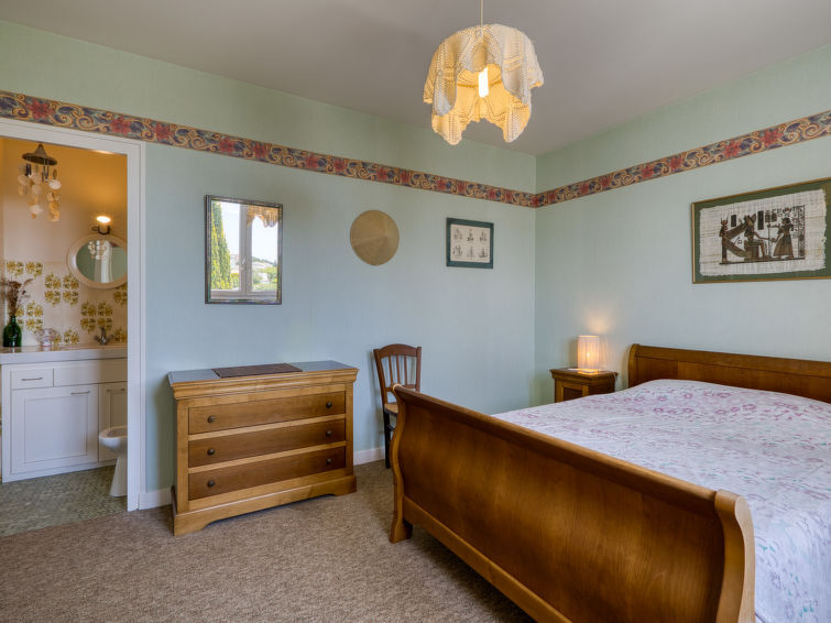 Huis 5-kamers 155 m2 op 2 verdiepingen. Ruim: woon-/eetkamer met TV (Flatscreen TV). Uitgang naar de tuin, naar het terras. 1 kamer met 2 bedden (80 cm, lengte 190 cm). Keuken (3-pits kookplaat, oven, broodrooster, waterkoker, magnetron, diepvriezer, elektrische koffiemachine). Douche, aparte WC. Elektrische verwarming, air-conditioning. Bovenverdieping: 1 kamer met 1 2-pers bed (1 x 140 cm, lengte 190 cm). 1 kamer met 2 bedden (80 cm, lengte 190 cm), wastafel en douche. 1 kamer met 1 2-pers bed (140 cm, lengte 190 cm), wastafel en bidet. Badkamer. Terrasmeubelen, barbecue. Ter beschikking: wasmachine, kinderstoel, kinderbed. Internet (WiFi, gratis). Parkeerplaats (2 Auto's), garage (1 Auto). Maximaal 1 huisdier/hond toegestaan. Rookmelders.