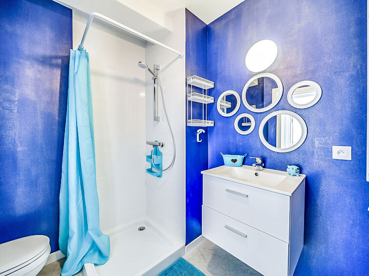 Studio 1-kamer 28 m2 op de 5e verdieping. Comfortabel en mooi ingericht: woon-/eetkamer met 1 2-pers divanbed (140 cm, lengte 190 cm), TV. Uitgang naar het terras. Keuken (2 keramische glas kookplaten, magnetron, elektrische koffiemachine, pads voor de koffiemachine (Nespresso) extra). Uitgang naar het terras. Douche/WC. Elektrische verwarming. Terras 12 m2. Terrasmeubelen. Uitzicht op zee. Ter beschikking: wasmachine. Internet (Internet (WiFi), extra). Rookmelders. 06029004773WF
