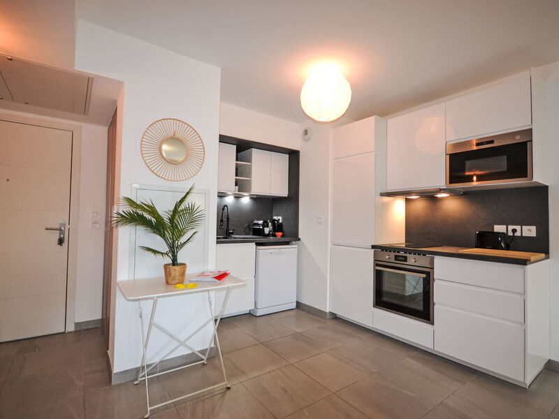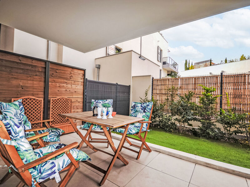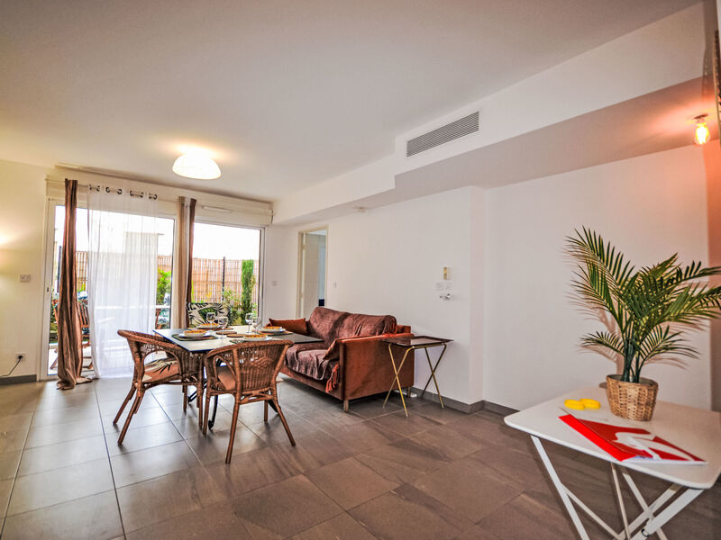 Appartement 2-kamers 43 m2, op de begane grond. Comfortabel en modern ingericht: woon-/eetkamer met panoramavenster met TV (Flatscreen TV). Uitgang naar het terras. 1 kamer met panoramavenster met 2 bedden (80 cm, lengte 200 cm). Uitgang naar het terras. Open keuken (oven, afwasmachine, 2 inductiekookplaten, broodrooster, waterkoker, magnetron, elektrische koffiemachine, pads voor de koffiemachine (Nespresso) extra) met eettafel. Douche/WC. Elektrische verwarming, heteluchtverwarming. Terras 9 m2, kleine tuin 26 m2, op het zuiden gelegen. Terrasmeubelen, zitgelegenheid. Uitzicht op de tuin. Ter beschikking: wasmachine, strijkijzer, haardroger. Internet (WiFi, gratis). Garage, breedte 260 cm. Niet rokers woning. Rookmelders, brandblusser. Aanbod door een particulier volgens art. 155, IV van CGI. 1300100590318
