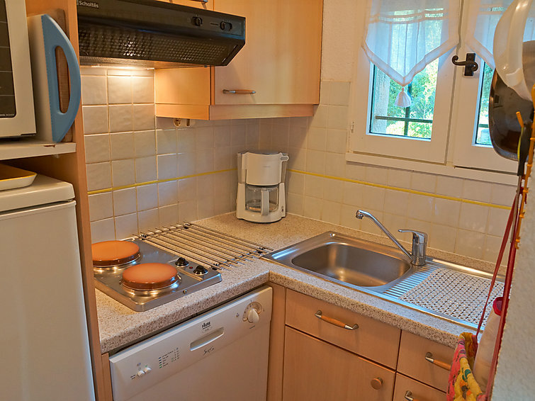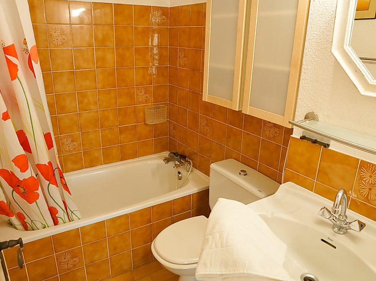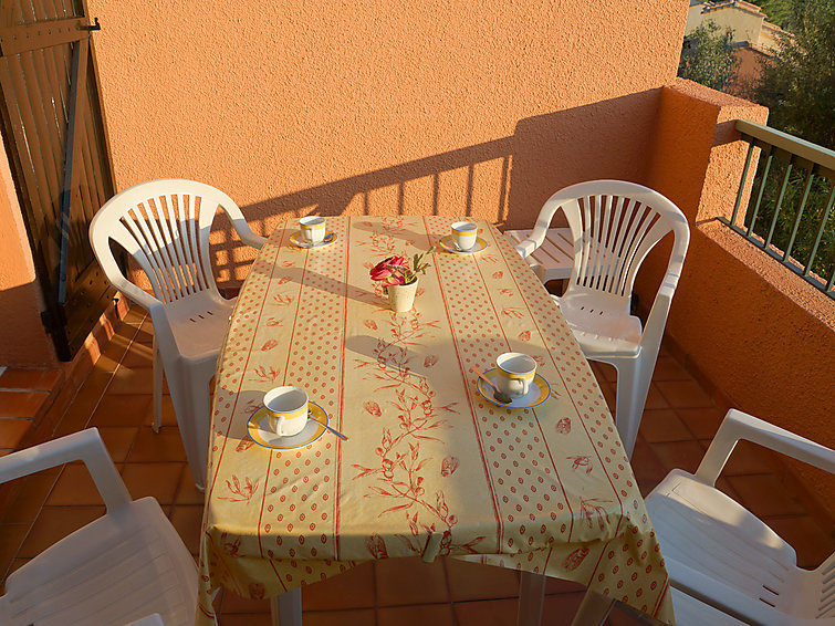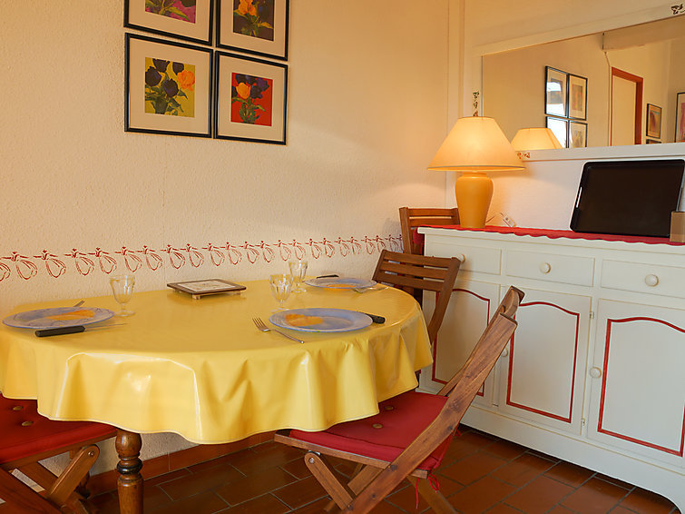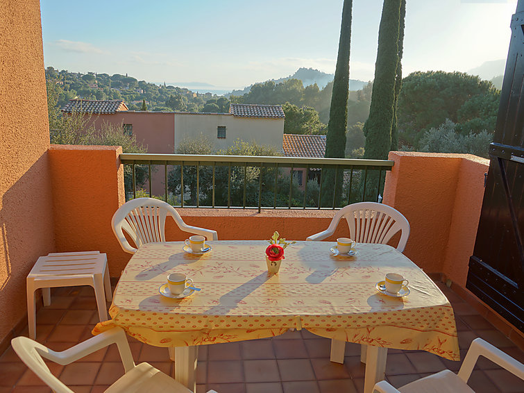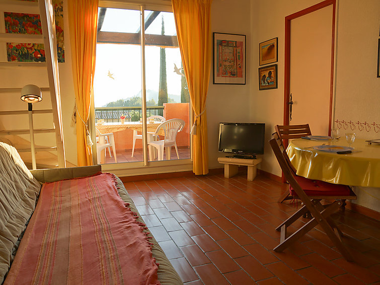 Appartement 2-kamers 30 m2 op de 1e verdieping. Woon-/eetkamer met 1 2-pers divanbed (135 cm, lengte 190 cm), eettafel en TV (Flatscreen TV). Uitgang naar het balkon. 1 kamer met 1 2-pers bed (140 cm, lengte 190 cm). Uitgang naar het balkon. Kookhoek (oven, afwasmachine, 2 keramische glas kookplaten, broodrooster, waterkoker, elektrische koffiemachine). Bad/WC. Klein balkon 6 m2, op het zuiden gelegen. Balkonmeubilair, ligstoelen (1). Uitzicht op zee. Ter beschikking: strijkijzer, haardroger. Internet (Internet (WiFi), extra). Parkeerplaats. Let op: koelkast zonder vriesvak. TV alleen FR. Rookmelders. 83070 000090 92