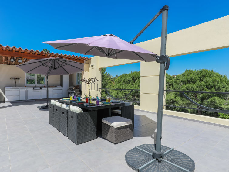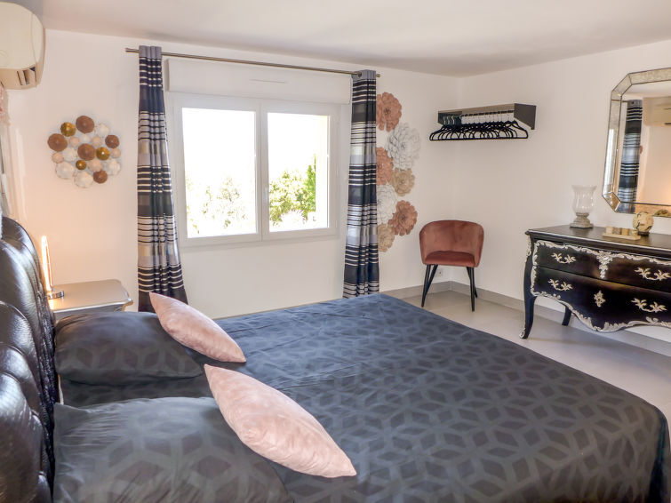 Moderne eengezinswoning "Les Toscanes", van 2 verdiepingen, omgeven door bomen. Huurobject bestaande uit hoofd-/ bijgebouw, buiten de plaats Roquebrune sur Argens, rustige, zonnige, verhoogde ligging op een heuvel, in een woonwijk, gebied met weinig verkeer, te midden van groen. Voor alleengebruik: wilde tuin 1 ha (omheind), openluchtzwembad hoekig, verwarmd, geen inkijk (12 x 6 m, 60 - 170 cm diepte, seizoensgebonden beschikbaarheid: 15.Mei. - 15.Okt.) met oprolbaar afdekscherm en alarminstallatie. Buitendouche, poolhouse, terras (170 m2), barbecue. In het huis: alarmsysteem. 1 maal per week schoonmaak op verzoek (extra). Winkel 3 km, bushalte "Roquebrune Village" 2 km, treinstation "Fréjus" 20 km, zandstrand "Plage de Saint Aygulf" 15 km kiezelstrand "Calanque des Louvans" 14 km, park "Areca" 14 km, thermaalbad "Thalasso de Port Fréjus" 20 km, meer Lac de l'Arèna 3 km. Jachthaven 15 km, golfterrein (18 holes) 10 km, zeilschool 15 km, manege 7 km, sportcentrum 4 km, wandelroutes 100 m vanaf het huis. Attracties in de buurt: Base Nature du Rocher 4 km, Roquebrune sur Argens 3 km, Saint Aygulf 15 km, Aqualand, Luna park 20 km, Sainte Maxime 24 km, Saint Tropez 40 km. Bekende skigebieden kunnen gemakkelijk worden bereikt: Auron, Isola 2000 155 km. Bekende meren kunnen gemakkelijk worden bereikt: Lac de St Cassien 50 km, Lac du Du Verdon 95 km. Wandelgebied Col de Valdingarde 5 km, Estérel 25 km. Auto noodzakelijk. Niet geschikt voor kleine kinderen. De eigenaar accepteert geen jeugdgroepen. Gesloten residentie met een elektrische deur.