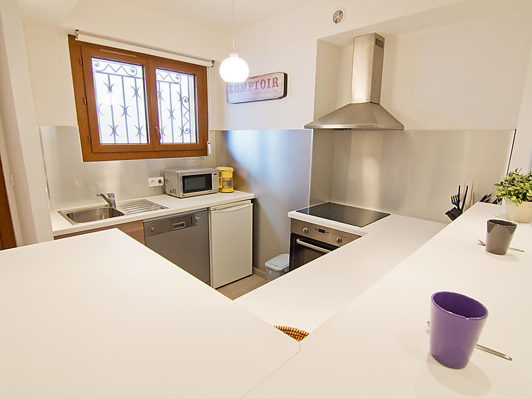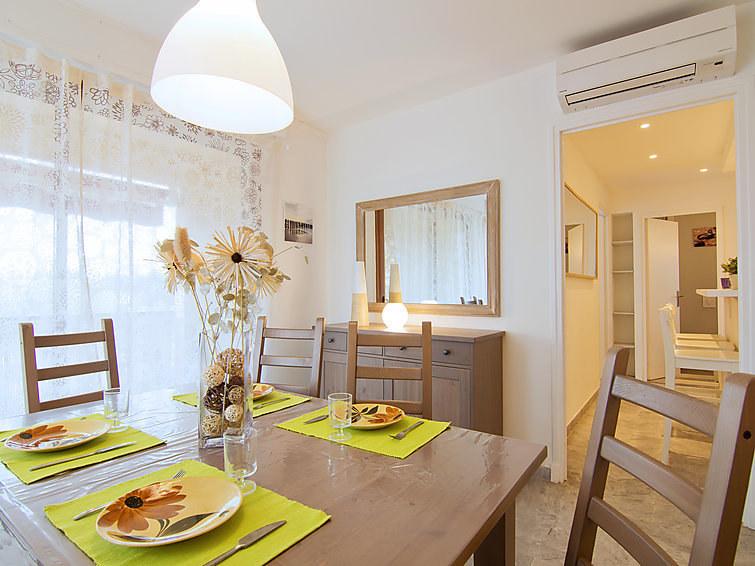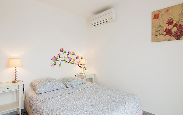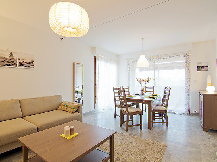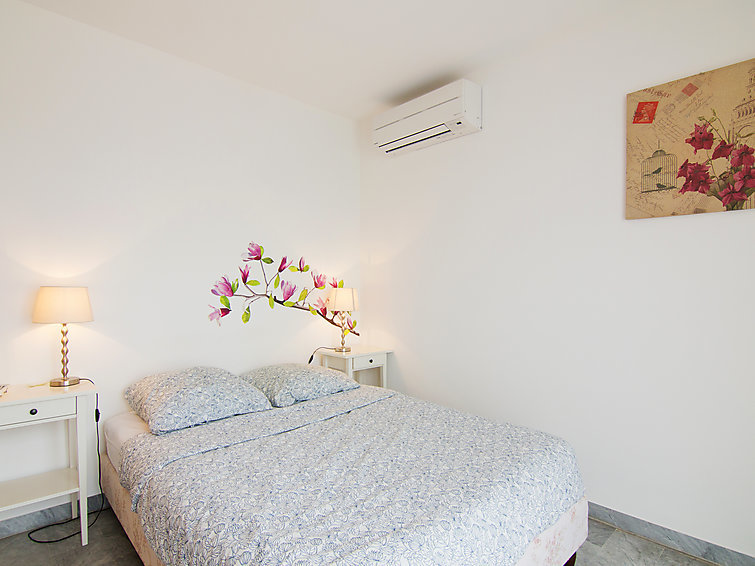 Appartement 2-kamers 65 m2 op de 3e verdieping. Comfortabel en gezellig ingericht: woon-/eetkamer met panoramavenster met 1 2-pers divanbed (1 x 140 cm, lengte 190 cm), TV (Flatscreen TV), stereo-installatie, air-conditioning en elektrische rolluiken. Uitgang naar het terras. 1 kamer met 1 2-pers bed (1 x 140 cm, lengte 190 cm), air-conditioning en elektrische rolluiken. Open keuken (oven, afwasmachine, 4 keramische glas kookplaten, broodrooster, waterkoker, magnetron, elektrische koffiemachine) met bar. Bad/WC. Verwarming. Op het zuidoosten gelegen, terras 6 m2. Terrasmeubelen. Uitzicht in de verte op zee. Ter beschikking: wasmachine, strijkijzer, haardroger. Internet (Internet (WiFi), extra). Garage nr. 5 op 230 m, hoogte 190 cm. Let op: 1 klein huisdier/hond toegestaan. TV alleen FR. Rookmelders.