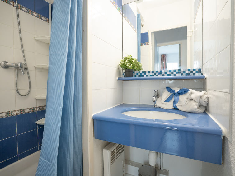 "Les Bastides (I2 047)", appartement 4-kamers 60 m2 op 2 verdiepingen, op verhoogde begane grond. Woonkamer met TV (Flatscreen TV), air-conditioning. Uitgang naar het terras, naar de zitplaats in de tuin. Open keuken (4-pits kookplaat, afwasmachine, broodrooster, waterkoker, magnetron, diepvriezer, elektrische koffiemachine, pads voor de koffiemachine (tassimo) extra). Bovenverdieping: 1 kamer met 1 2-pers bed (160 cm, lengte 200 cm), air-conditioning. Uitgang naar het terras. 1 kamer met 1 x 2 stapelbedden (80 cm, lengte 190 cm), air-conditioning. Uitgang naar het terras. 1 kamer met 2 bedden (80 cm, lengte 190 cm). Badkamer, douche, 2 aparte WC's. Elektrische verwarming. Terras 12 m2, terras 10 m2, zithoek in de tuin. Terrasmeubelen. Uitzicht op zee. Ter beschikking: wasmachine. Internet(WiFi), gratis). Parkeerplaats (1 Auto) bij het huis. Niet rokers woning. 1 klein huisdier/hond toegestaan. Rookmelders. Aanbod door een particulier volgens art. 155, IV van CGI.