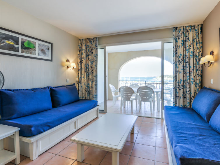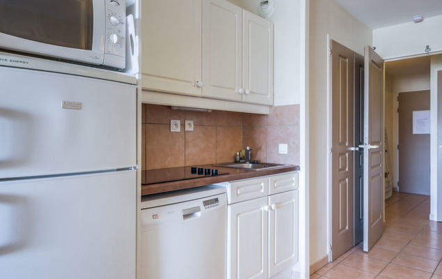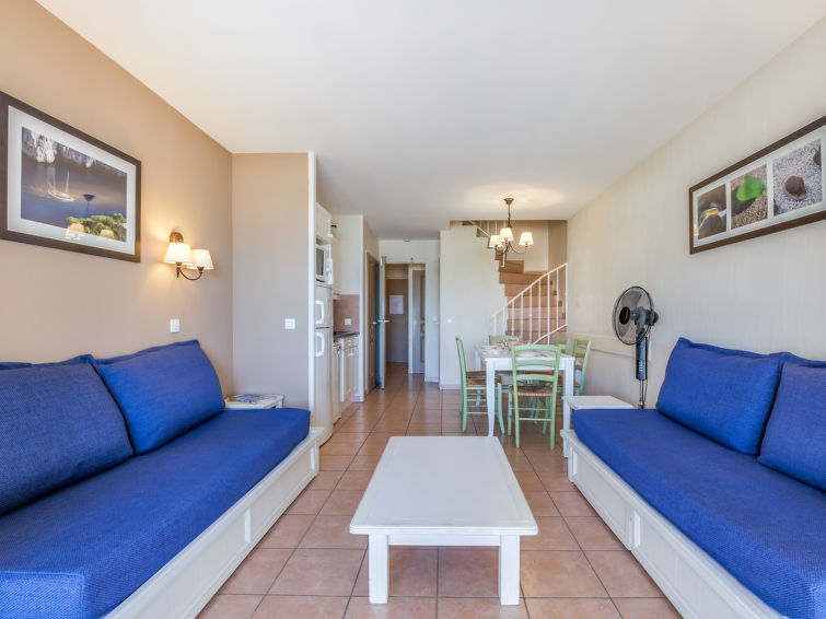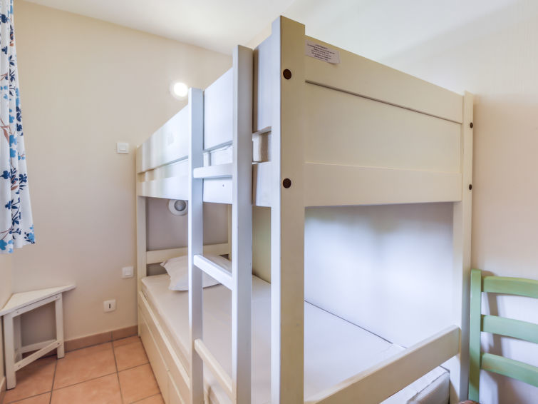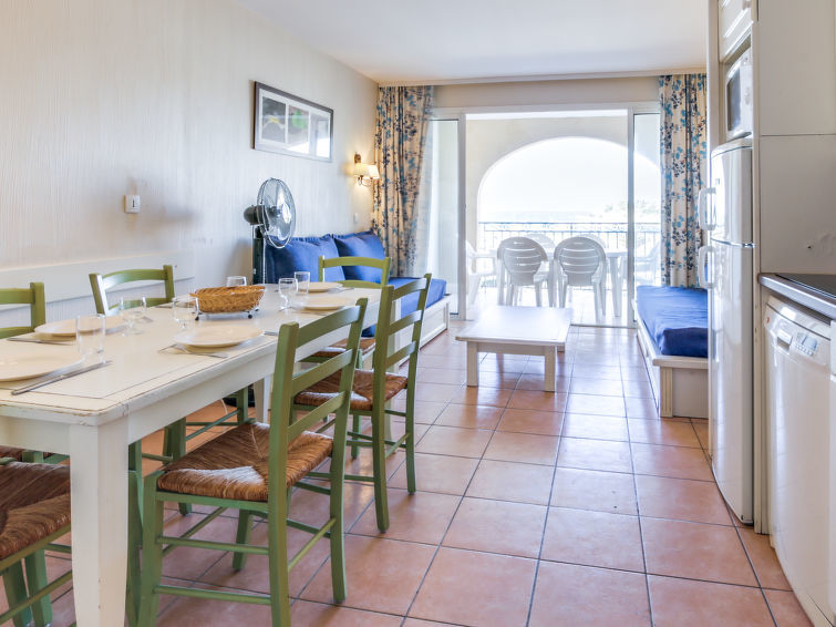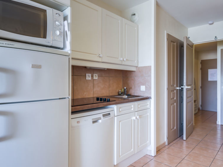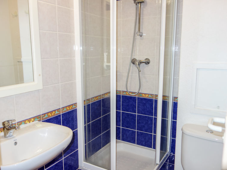 Appartement 3-kamers 45 m2 op 2 verdiepingen op de 2e verdieping. Doelmatig en mooi ingericht: woon-/eetkamer met 2 bedden (80 cm, lengte 190 cm), TV (Flatscreen TV). Uitgang naar het terras. Cabine met 1 x 2 stapelbedden (80 cm, lengte 190 cm). Kookhoek (afwasmachine, 4 keramische glas kookplaten, broodrooster, waterkoker, diepvriezer, elektrische koffiemachine, combimagnetron). Douche/WC. Bovenverdieping: 1 kamer met 1 2-pers bed (140 cm, lengte 190 cm). Uitgang naar het balkon. Bad/WC. Elektrische verwarming. Balkon 12 m2, op het westen gelegen, terras 7 m2, overdekt, op het westen gelegen. Terrasmeubelen. Mooi uitzicht op zee. Ter beschikking: wasmachine. Internet (Internet (WiFi), extra). Parkeerplaats nr. 549 (niveau 2) (overdekt), hoogte 190 cm, breedte 249 cm. Let op: niet rokers woning. TV alleen FR. Rookmelders.