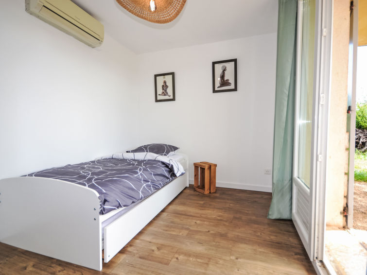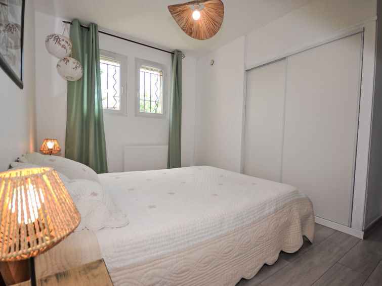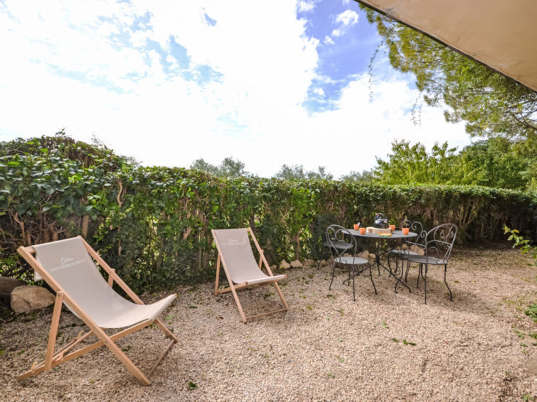 "Les Santons", appartement 3-kamers op de begane grond, op het westen gelegen. Licht, gerenoveerd in 2025, mooi en smaakvol ingericht: woon-/eetkamer met TV, internationale TV-zenders en air-conditioning. Uitgang naar het terras. 1 kamer met 1 2-pers bed (160 cm, lengte 200 cm). 1 kamer met 1 uitschuifbaar bed (2 pers. 2 x 90 cm, lengte 190 cm), air-conditioning. Uitgang naar de zitplaats in de tuin. Open keuken (4-pits kookplaat, oven, afwasmachine, magnetron, diepvriezer, elektrische koffiemachine) met air-conditioning. Aparte WC, bad of douche. Elektrische verwarming. Natuurstenen vloeren. Terras 35 m2. Ter beschikking: wasmachine, kinderstoel, kinderbed. Internet (WiFi, gratis). Parkeerplaats (omheind, 2 Auto's). Rookmelders. Aanbod door een particulier volgens art. 155, IV van CGI.