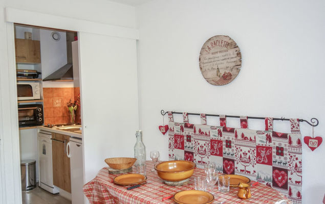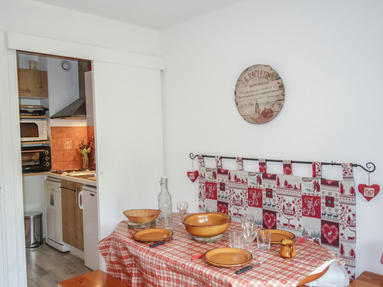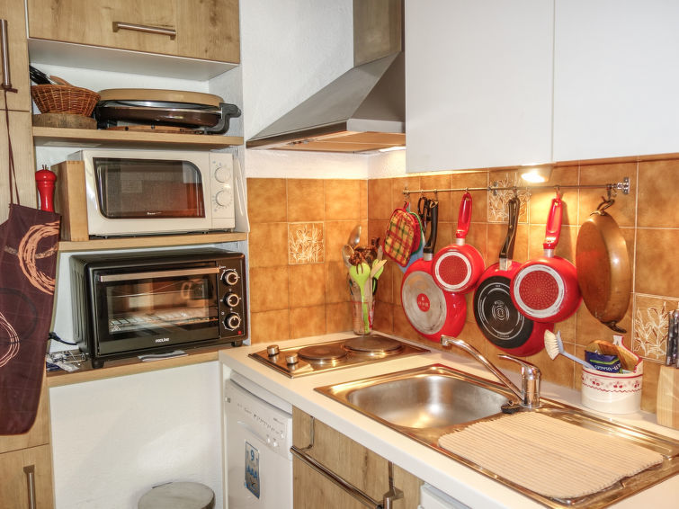 "sapin A17", appartement 2-kamers 30 m2 op de 1e verdieping. Het objekt is geschikt voor 2 volwassenen + 2 kinderen. Woon-/eetkamer met 1 divanbed (140 cm), eethoek en TV. Uitgang naar het terras. 1 kleine kamer met 1 x 1 stapelbedden (80 cm), 1 uitschuifbaar bed (2 x 80 cm). Uitgang naar het terras. Open keuken (2-pits kookplaat, mini-oven, afwasmachine, elektrische koffiemachine, raclette oven, combimagnetron, fondue Set (kaas)). Badkamer, aparte WC. Elektrische verwarming, vloerverwarming. 2 terrassen, op het oosten gelegen en op het zuiden gelegen. Terrasmeubelen. Parkeerplaats nr. 17 (overdekt, 1 Auto). Let op: niet rokers woning. TV alleen FR. Geen lift.