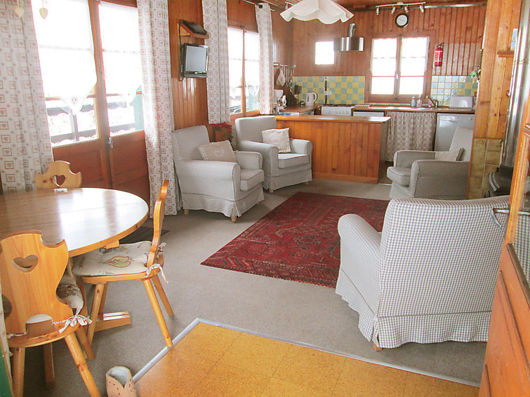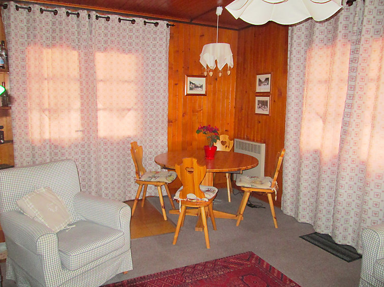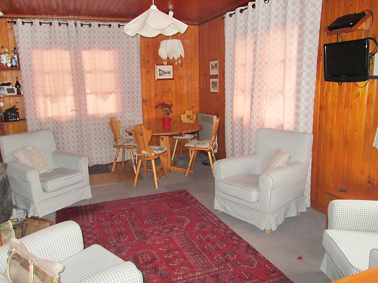 Chalet 4-kamers 48 m2 op 2 verdiepingen. Rustiek en gezellig ingericht: woonkamer met zwedenkachel, Digitale TV en DVD. Uitgang naar het balkon, op het zuiden. 1 kamer met 1 2-pers bed (160 cm, lengte 200 cm), douche/WC. Open keuken (4-pits kookplaat, oven, afwasmachine, magnetron) met bar. Douche/WC. Bovenverdieping: (steile trap), 1 kamer met afgeschuinde daken met 1 2-pers bed (140 cm). 1 kamer met afgeschuinde daken met 2 bedden (90 cm). Balkon, terras. Terrasmeubelen, barbecue. Ter beschikking: wasmachine, droger. Internet (Internet (WiFi), gratis). Parkeerplaats (3 Auto's). Let op: maximaal 1 huisdier/hond toegestaan. TV alleen EN, FR, DE. Gelieve 3 dagen voor aankomst contact op te nemen met de sleutelhouder om uw verwachte aankomsttijd door te geven. In geval van late aankomst vindt u de kluis met de sleutels erin aan de muur van het chalet, te openen met.