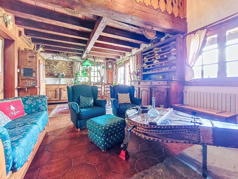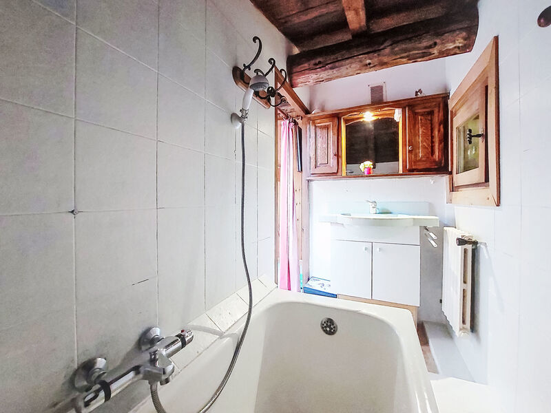 Appartement 5-kamers op de 1e verdieping. Woon-/eetkamer met open haard (alleen decoratie), TV (Flatscreen TV). Uitgang naar het balkon, op het westen. 1 kamer met 1 2-pers bed (1 x 140 cm, lengte 190 cm). 1 kamer met 1 2-pers bed (1 x 140 cm, lengte 190 cm), TV (Flatscreen TV). Uitgang naar het balkon. Open keuken (4-pits kookplaat, oven, afwasmachine, 3 keramische glas kookplaten, broodrooster, waterkoker, magnetron, elektrische koffiemachine). Douche/WC, aparte WC. Elektrische verwarming, boiler. Bovenverdieping: (steile trap) kleine, open bureau. Uitgang naar het balkon. 1 kamer met 1 2-pers bed (1 x 140 cm, lengte 190 cm), bad. 1 kamer met 1 2-pers bed (140 cm, lengte 190 cm), aparte WC. Uitgang naar het balkon. Mooi uitzicht op de bergen en het dorp. Ter beschikking: wasmachine, strijkijzer, haardroger. Internet (WiFi, gratis). Parkeerplaats (1 Auto). Niet rokers woning. TV alleen FR. Rookmelders, brandblusser.
