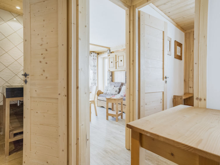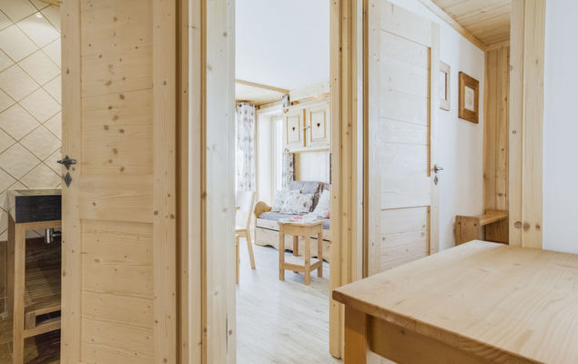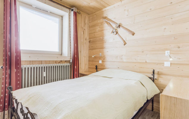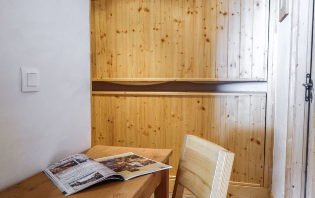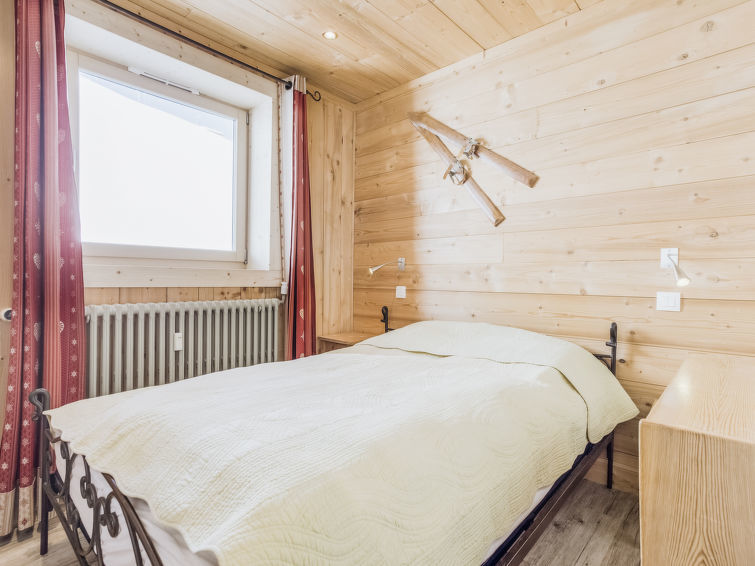 Appartement 2-kamers 32 m2 op de 2e verdieping. Woon-/eetkamer met 1 uitschuifbaar bed (2 pers. 2 x 80 cm, lengte 190 cm), TV. 1 kamer met 1 2-pers bed (140 cm). Hal met 1 x 2 stapelbedden (80 cm, lengte 190 cm). Open keuken (oven, afwasmachine, 3 keramische glas kookplaten, magnetron). Douche/WC. Groot balkon 10 m2, op het zuiden gelegen. Zeer mooi panoramazicht op de bergen en de skipiste. Ter beschikking: Internet (Internet (WiFi), gratis). Let op: niet rokers woning.